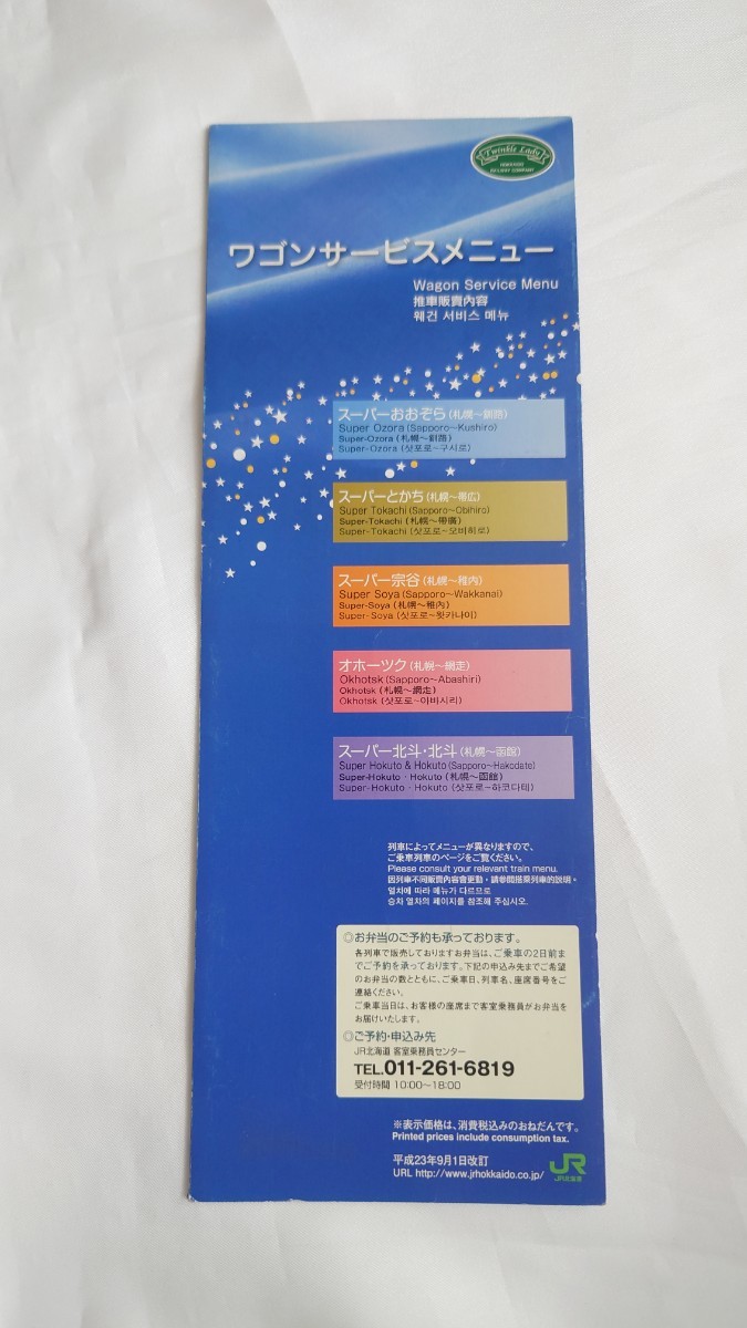 - ○JR北海道○車内ワゴンサービスメニュー○平成23年9月1日改訂 車内販売