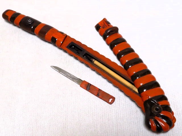 - 矢立 茶刀形 小柄紙切り 隠し矢立 筆入 時代