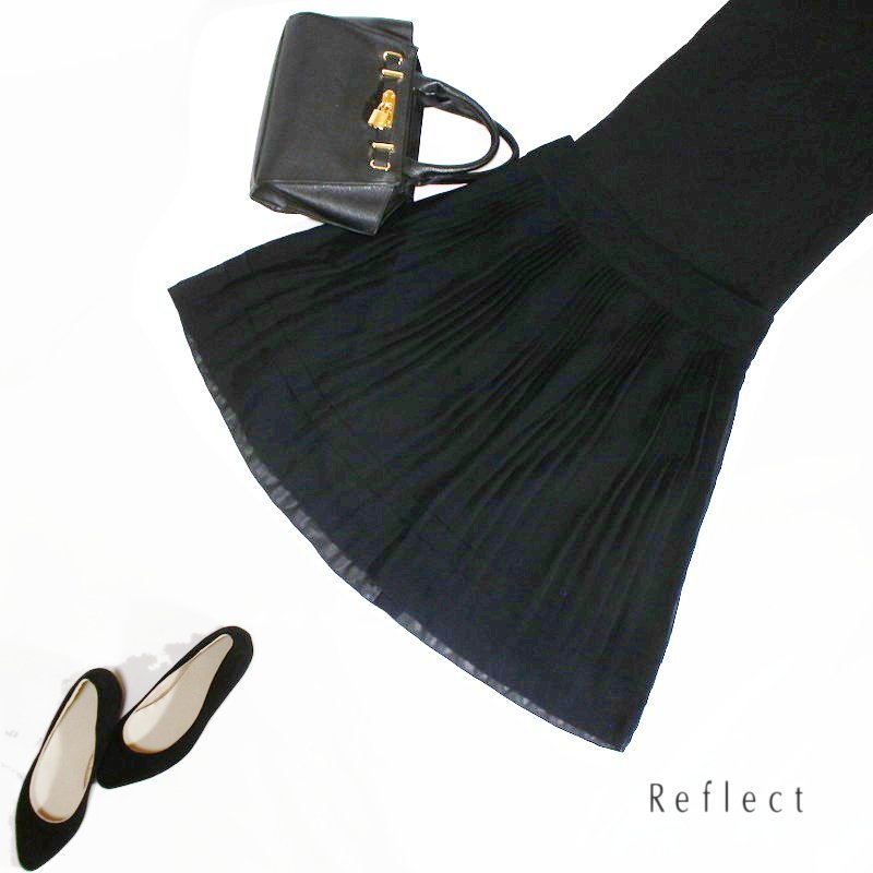 > 美品 リフレクト Reflect 株) ワールド ■ 春 夏 綺麗め Aライン プリーツ フレア シフォンスカート 11号 ブラック 黒 フォーマル 綺麗め