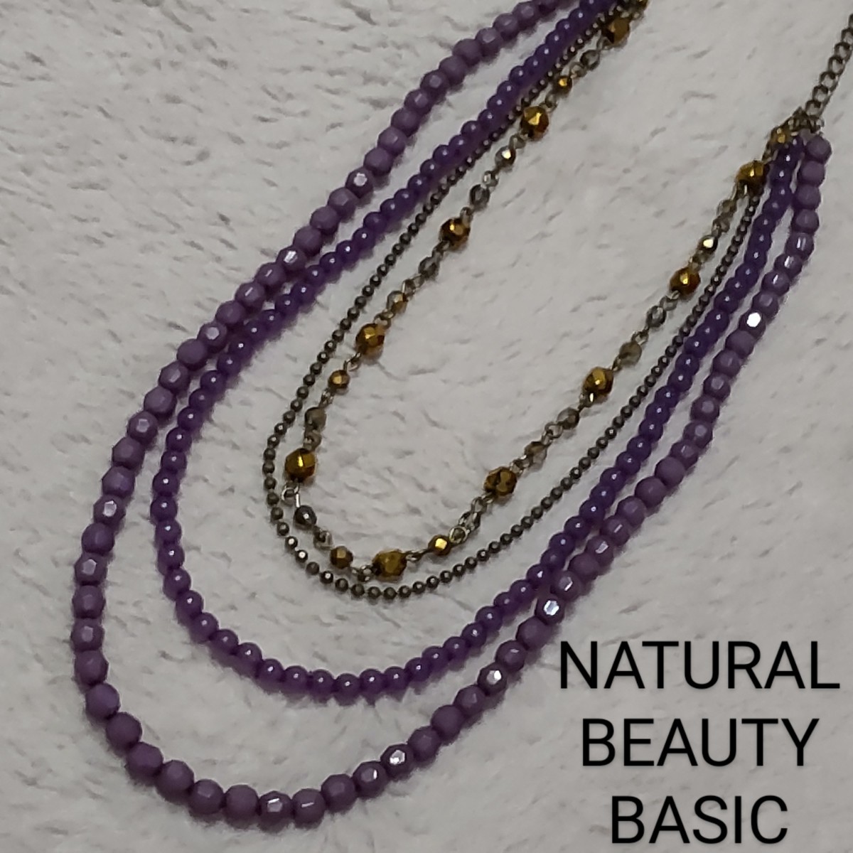 > NBB ナチュラルビューティーベーシック ネックレス アクセサリー ビーズ ガラス チェーン 紫 パープル シルバー 大人っぽい キレイ系 美品
