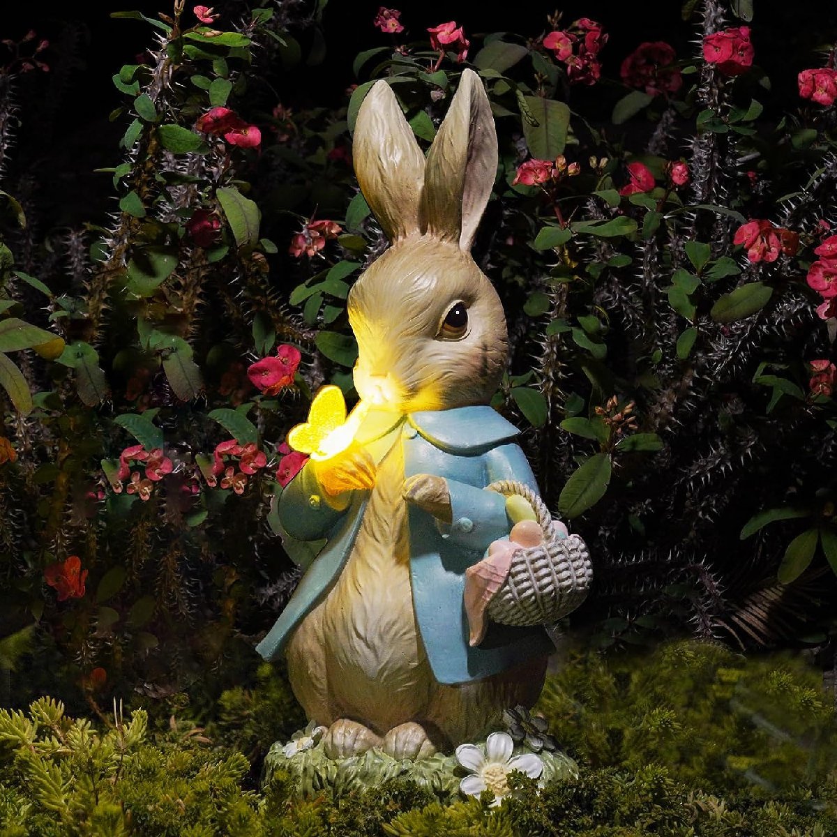 > バニーガーデン-ウサギの庭園彫像 芝生装飾用ソーラー・バタフライ付き 庭の愛らしい彫刻 屋内外 新築ギフト 贈り物 輸入品