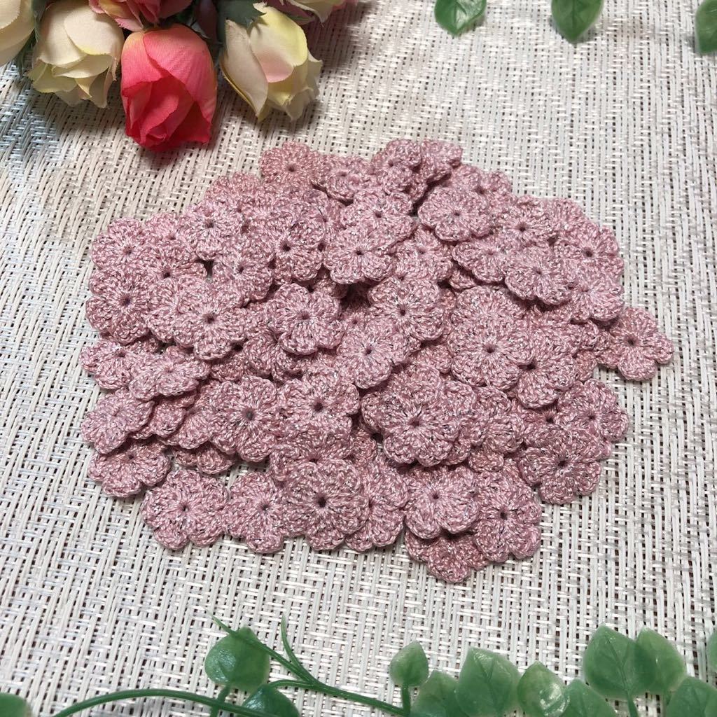 > ★(No.22)☆ハンドメイド☆可愛いお花(^^)100枚【ラメ入りピンク】レース糸 モチーフ パーツ等に