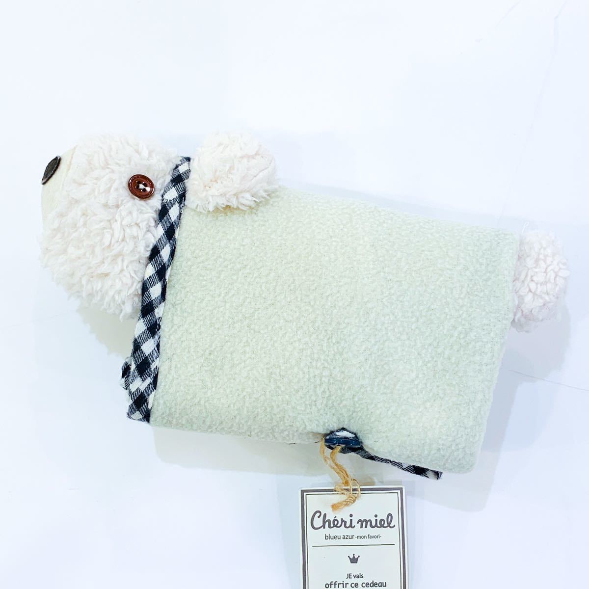 > 【新品未使用※やや難あり】① Cheri miel シェリーミエル ブランケット 膝掛け 犬 動物 アニマル 薄グリーン ミント チェック コンパクト