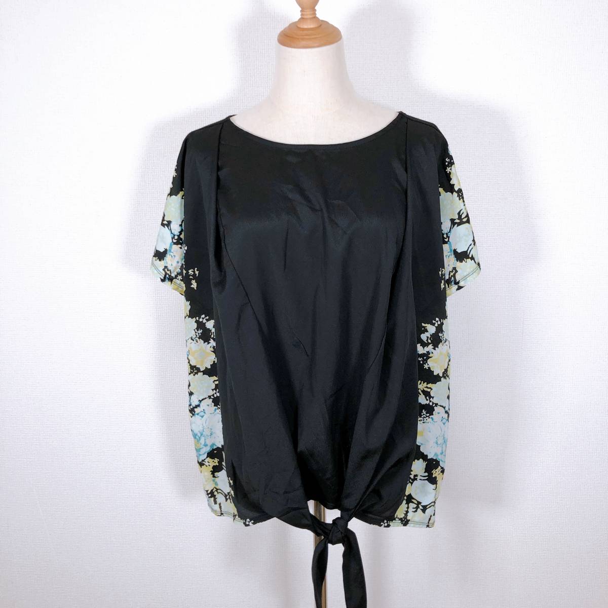 - WS0185 美品 LEPSIM レディース Tシャツ 半袖 レトロ F ブラック(黒) 着物風 ポリエステル 華やか エレガント フラワープリント