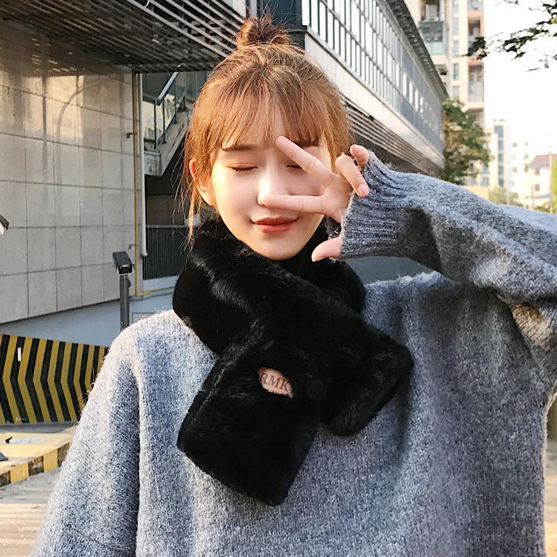 - 【ブラック】ティペット - マフラー エコファー 無地 秋 冬 防寒 暖かい