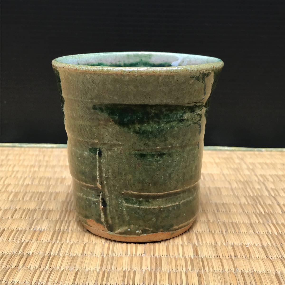 - (ロ)魯山人銘印 青織部のぐい呑み、 盃 返品OK 45
