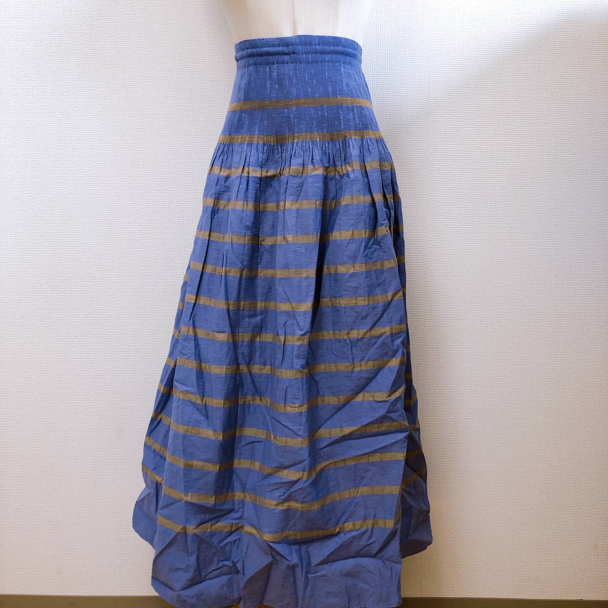 - WS0217 美品 レディース フレアスカート キュート パープル(紫) ボーダー ギャザー 華やか 美しい ロングスカート ワンピース 2WAY