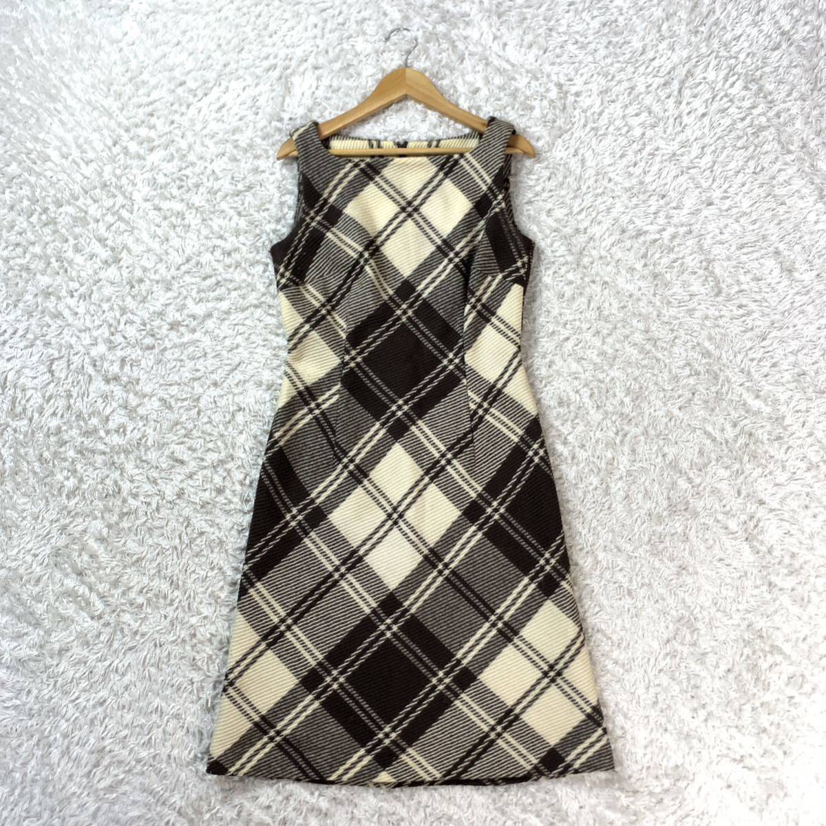> 組曲 KUMIKYOKU SiS ひざ丈ワンピース アイボリー ブラウン チェック ウール100 2 YA4071