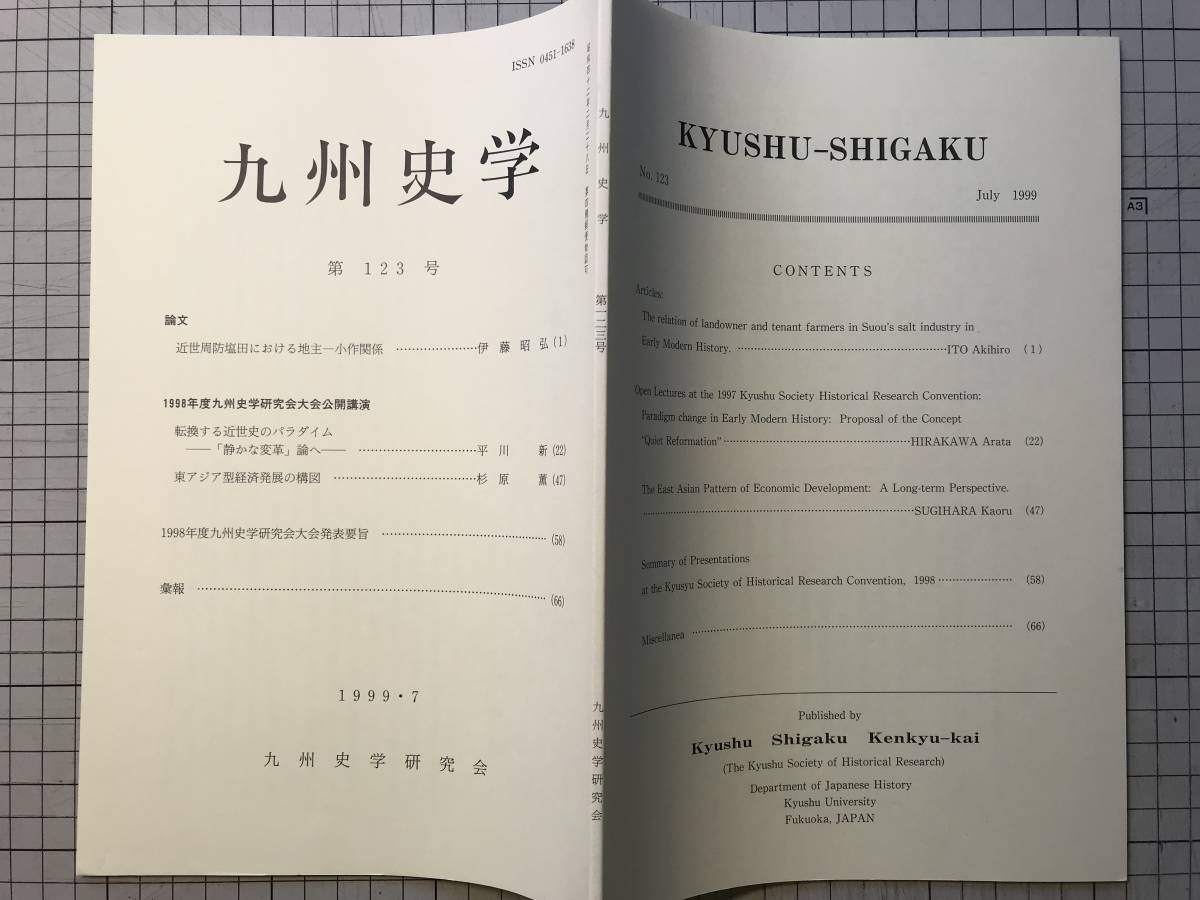- 『九州史学 第123号』伊藤昭弘 近世周防塩田における地主ー小作関係/杉原薫 東アジア型経済発展の構図 他 九州史学研究会 1999年刊 08352