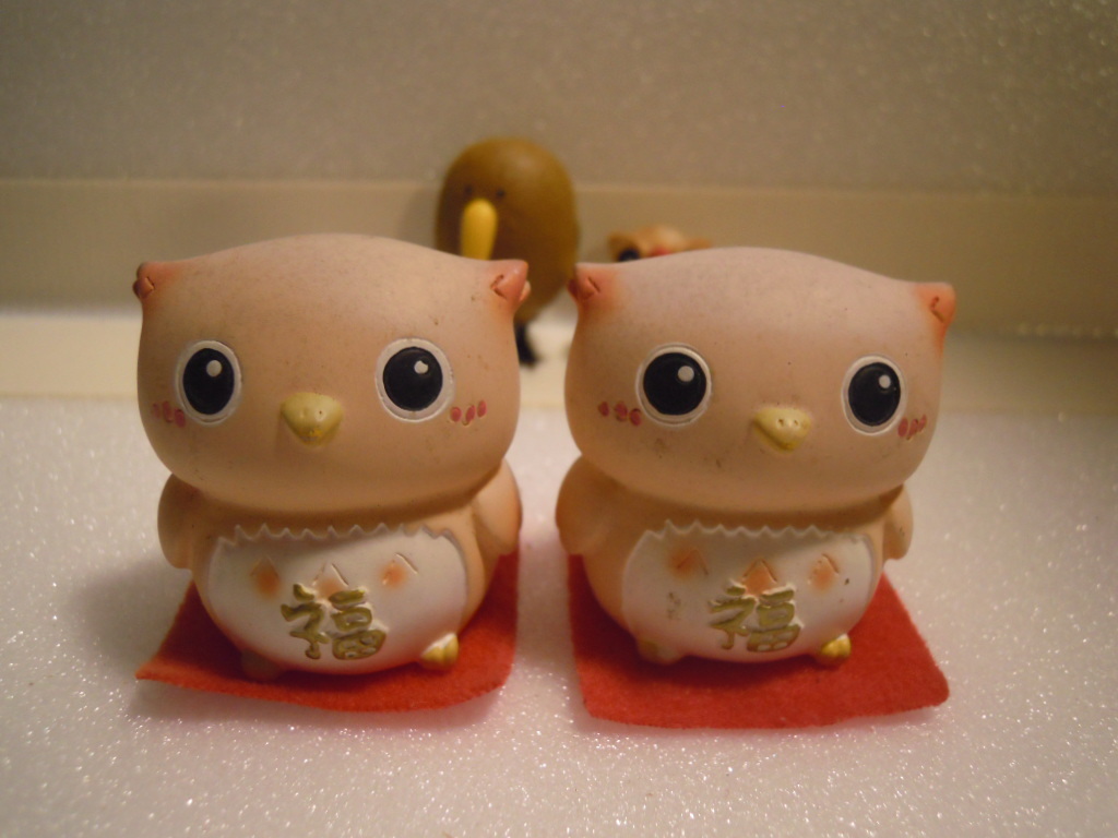 - 【三】福ふくろう 2体 招きふくろう おまけ付き ◇ 置物 縁起物 招福 雑貨売切