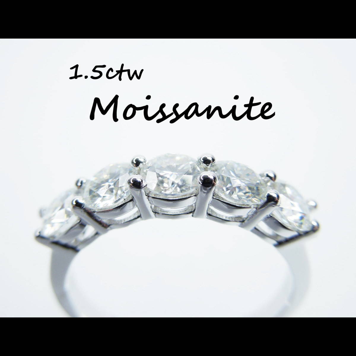 > 約14号 3EX モアサナイト 1.5ctw ファイブストーンリング 指輪 5石 リング シルバー925 silver925 モアッサナイト 新品 未使用