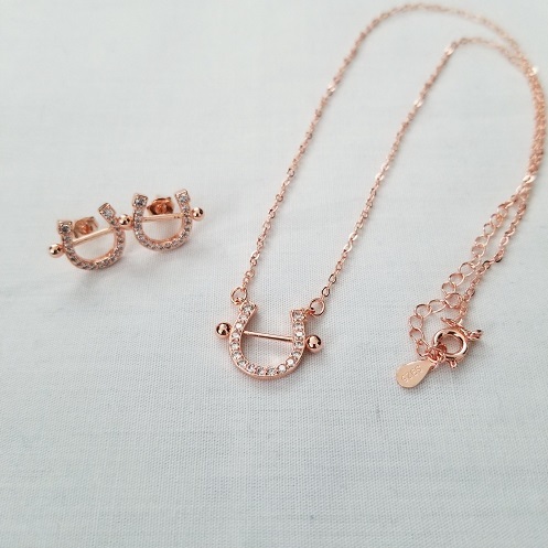 - S925 ホースシュー ピンクゴールド ネックレス&ピアスセット 乗馬 馬術