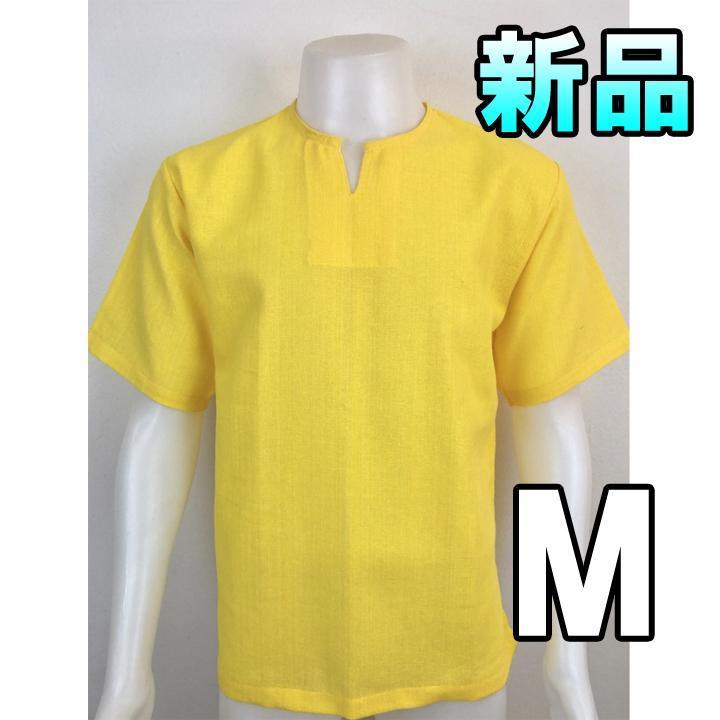 - ★大人気につき在庫わずか!次入荷未定!最終値下げ!新品未使用 メンズtシャツ アジアン イエロー M Vネック 半袖 エスニック