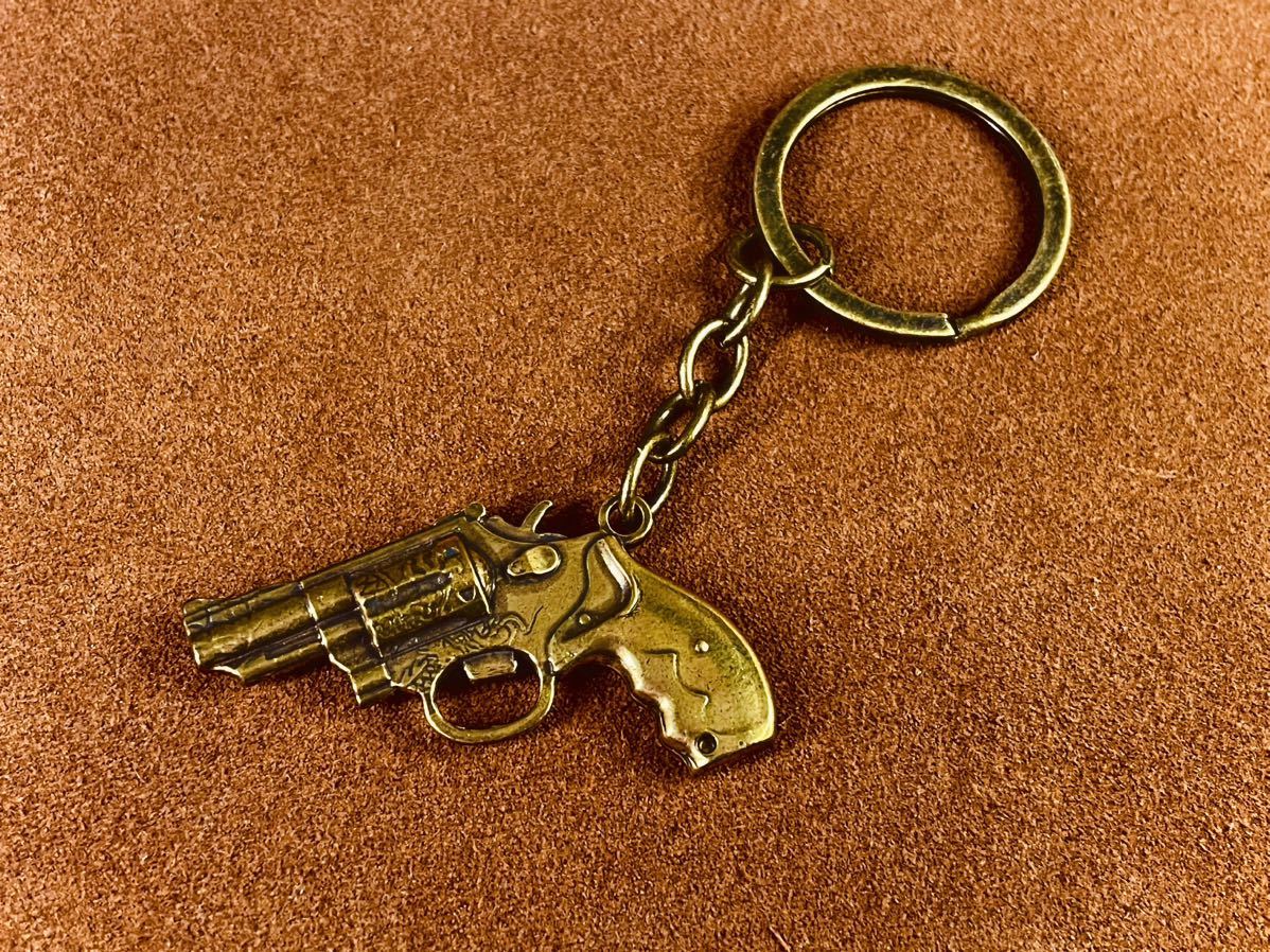 - 真鍮 キーホルダー キーリング リボルバー チャーム キーリング E22