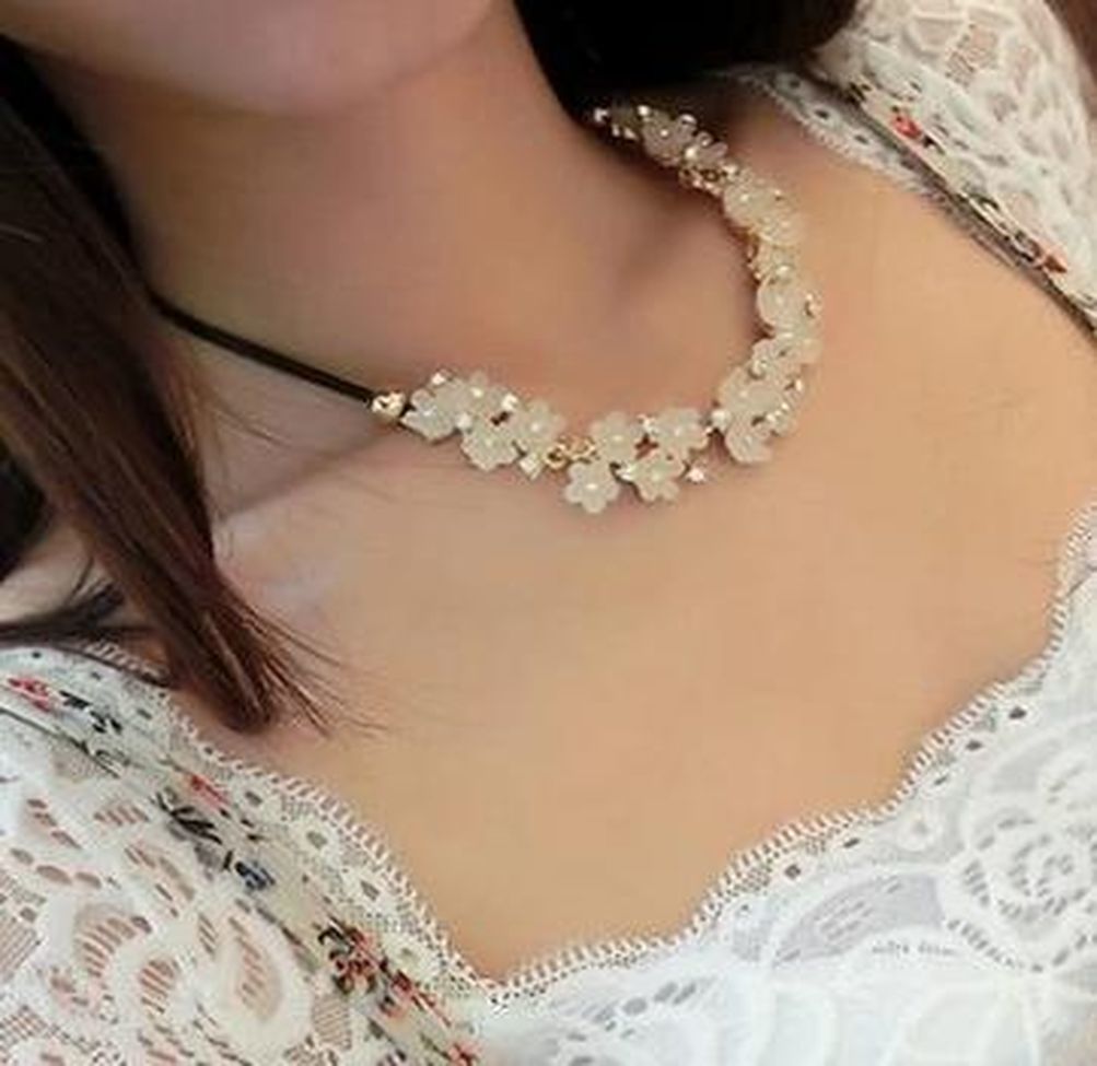 - 11.革ひもネックレス 花 ビジュー ピンク キレイ かわいい