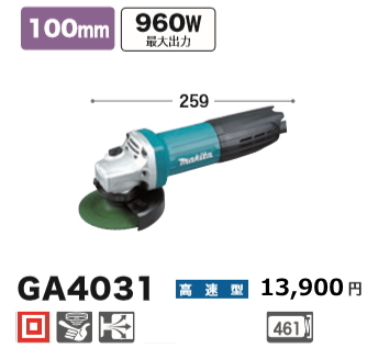 - マキタ 100mm ディスクグラインダ GA4031 新品