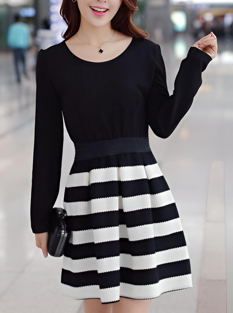 - 新3.ワンピース 綺麗め 切り替え フレア ボーダー ブラック M