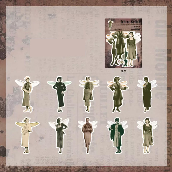 - 30枚 シール 妖精 フェアリー おしゃれ アンティーク ビンテージ デコステッカー アンティーク調 コラージュ レトロ 1021-5
