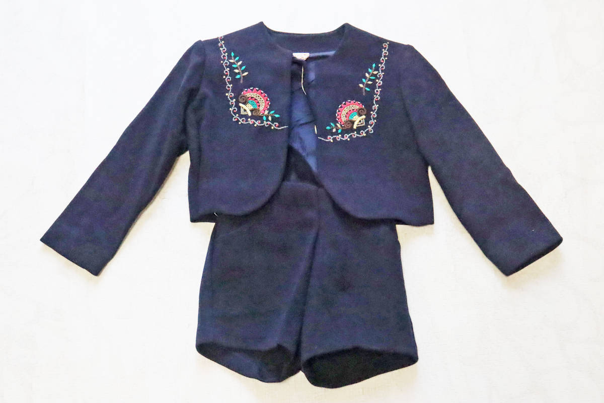 - 1839 昭和レトロ こども 男女 パンツスーツ ボレロ&パンツ 秋冬 105-110㎝位 ネイビー アクリル・ウール 未使用 長期保管品