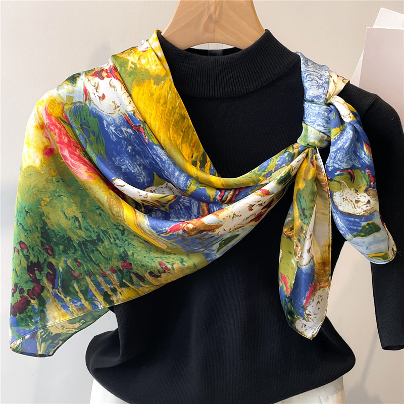 - 【RS-16】新品 レディース ストール正方形90cm マフラーシルク調 ショール油絵 日焼け 冷房対策スカーフ