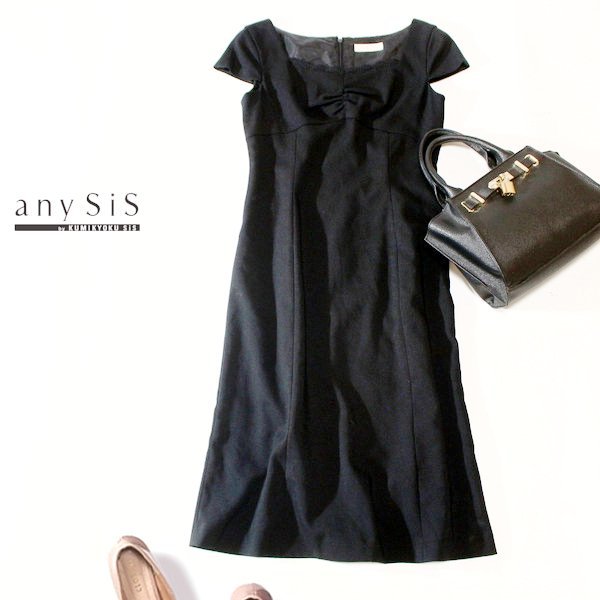 - ☆☆ 美品 オンワード樫山 anySiS エニィスィス ☆☆ 上品綺麗め レース・胸ギャザー スーツ生地 ワンピース 2号 M 春 秋 合服 23C09