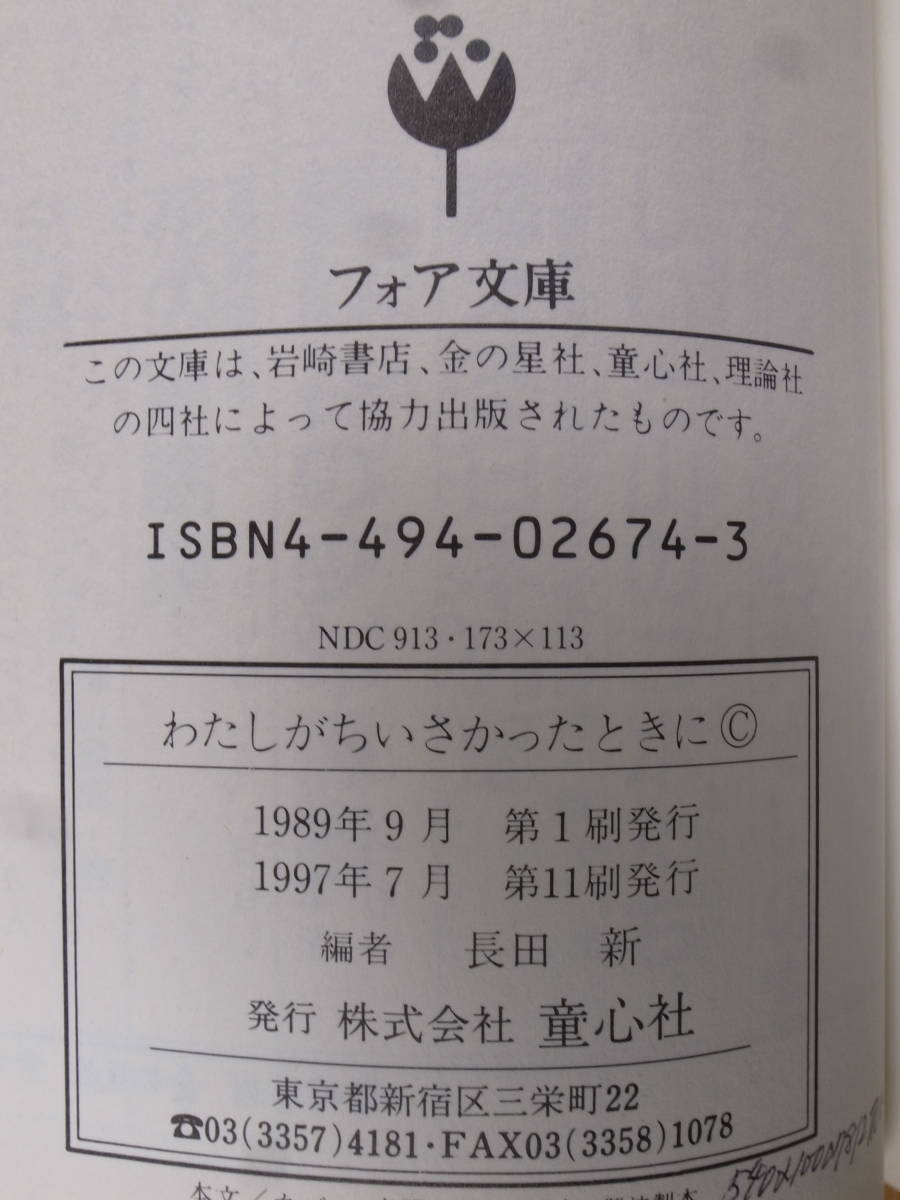 - わたしがちいさかったときに 童心社 1997年 第11刷 原爆の子 いわさきちひろ