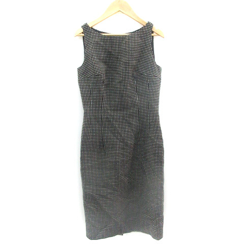 > ビアッジョブルー Viaggio Blu ワンピース ひざ丈 ノースリーブ ボートネック グラフチェック柄 ウール 2 ブラック 黒 /YM26 レディース