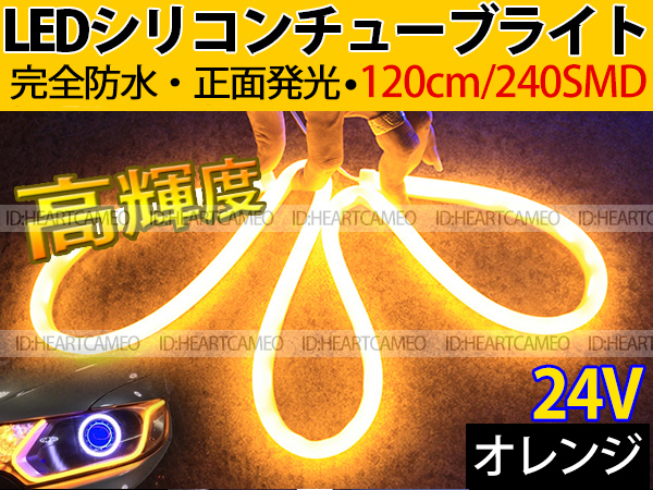 - 【送料無料】次世代 LEDシリコンチューブテープ 24V車用120㎝240SMD 防水仕様 驚きの柔軟性 オレンジ 2本/セット