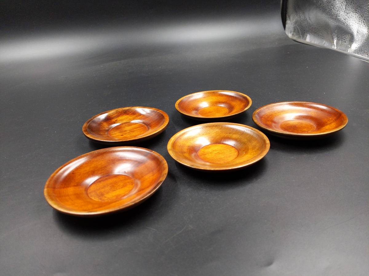 - C30 掘り出し物 茶道具 天然木 茶托5客◇コースター 急須 湯呑 盆