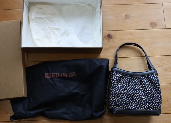 - 新品 印伝屋インデンヤ手提げバッグ レディースハンドバッグ鞄 レザー鹿革がまぐち 紺色フォーマル和装