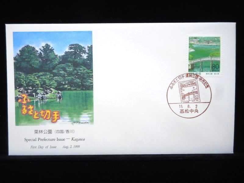 - ふるさと切手 栗林公園 1999年8月2日 高松中央 初日カバー FDC 日本切手 M-707