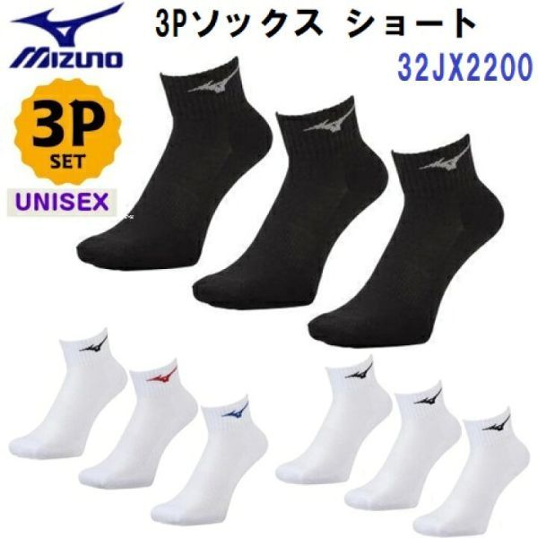 - 【新品】ミズノ 3足組ソックス 32JX220090 白(黒マーク) 23-25cm 通学用 バドミントン テニス⑥