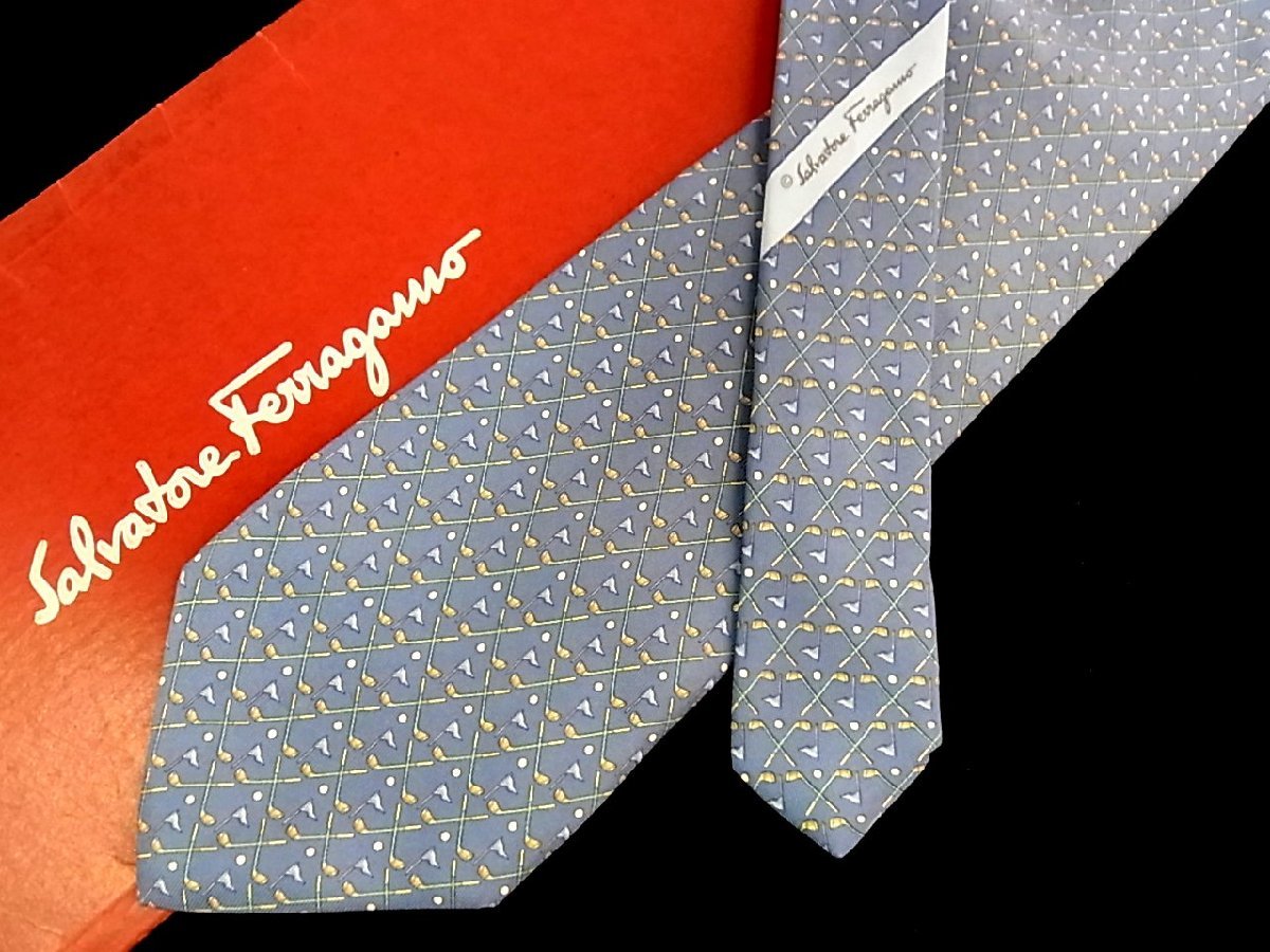 > ♪今週の特売980円~♪1319♪状態並品【Ferragamo】フェラガモ【ゴルフクラブ フラッグ スポーツ 柄】ネクタイ♪