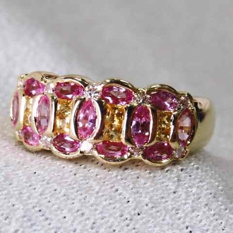 > 【値下げ交渉は質問欄より】可愛いサファイアのマルチカラー1,45CT☆K18製☆素敵なデザイン指輪☆ピカピカ逸品リング#12号!