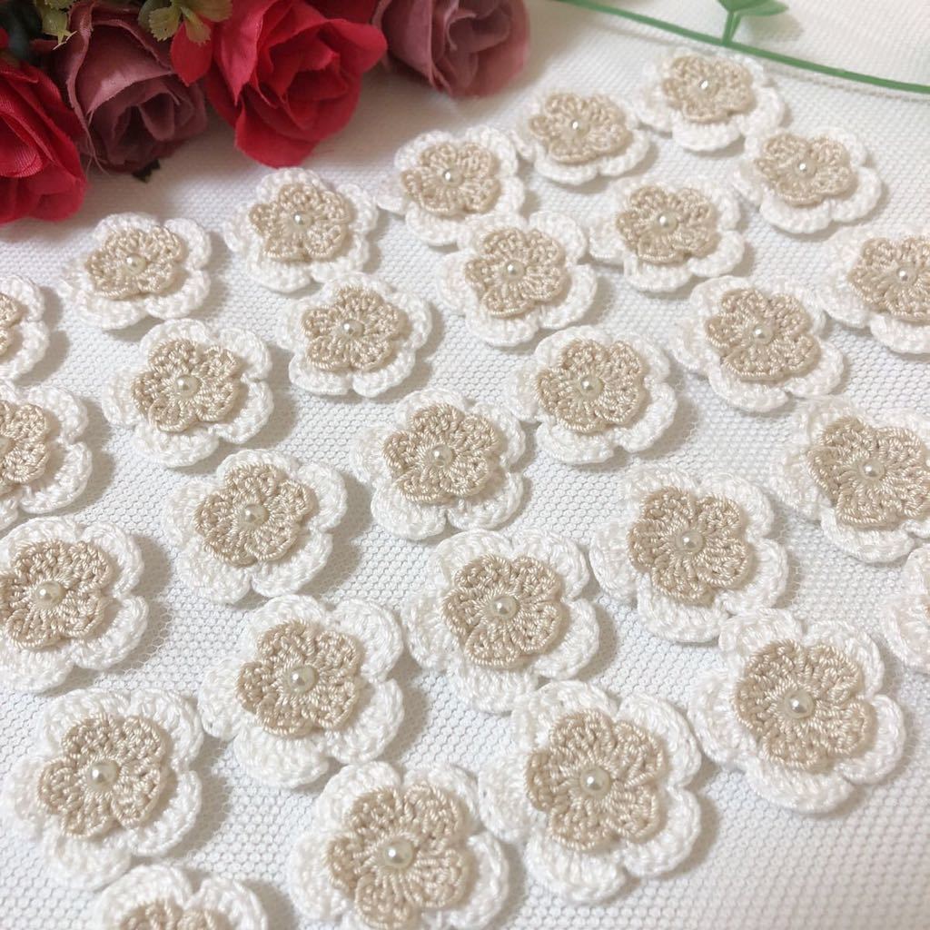 - **(No.193)2重お花(^^)☆ハンドメイド☆【クリームベージュ&ホワイト】レース糸 モチーフ パーツ等に