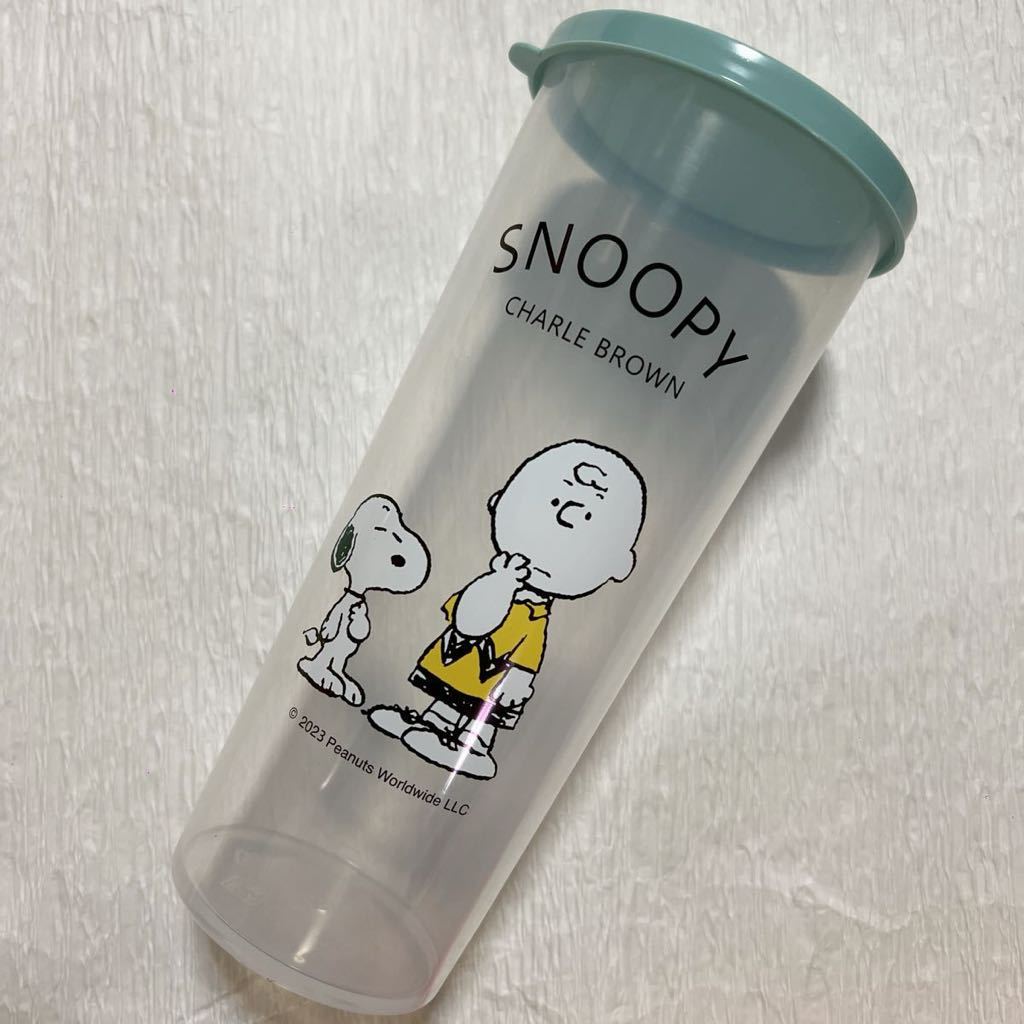 > 未使用 海外限定 スヌーピー SNOOPY 蓋付きタンブラー プラスチック容器 650ml チャーリーブラウン ピーナッツ PEANUTS グリーン カップ