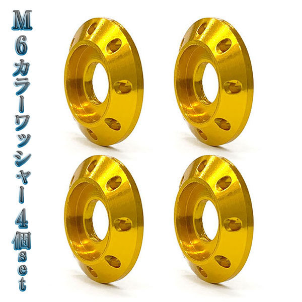 > ナンバー フェンダー ボルト座面枠 20×4mm アルミ M6 カラーワッシャー デザイン 同色 4個set 車 汎用 外装 ドレスアップ ゴールド