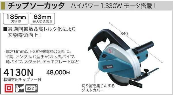 - マキタ 185mm チップソーカッタ 4130N【軟鋼材用チップソー付】■安心のマキタ純正/新品/未使用■