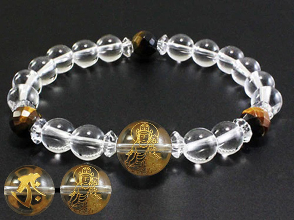 - 水晶「虚空蔵菩薩様と梵字」のブレスレット19.5cm