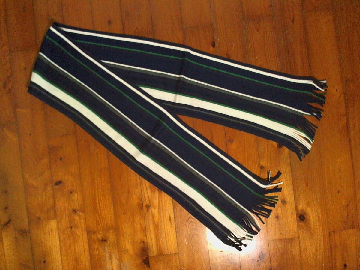 - ★新品・未使用品★(株)ブルーメイト【ノーブランド】アクリルニット 薄目マフラー 紺 白 緑 スカル柄 ストール
