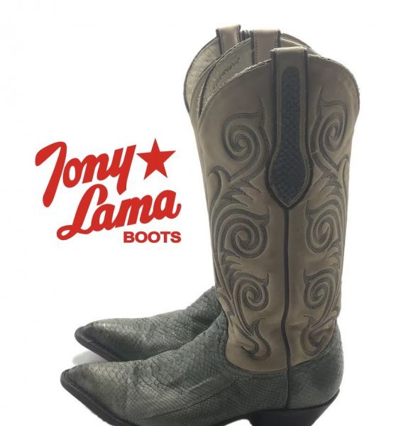 - TK 『素敵なエメラルドグリーン×ベージュ系』 TONY LAMA ウエスタンブーツ パイソン 5 1/2 M トニーラマ