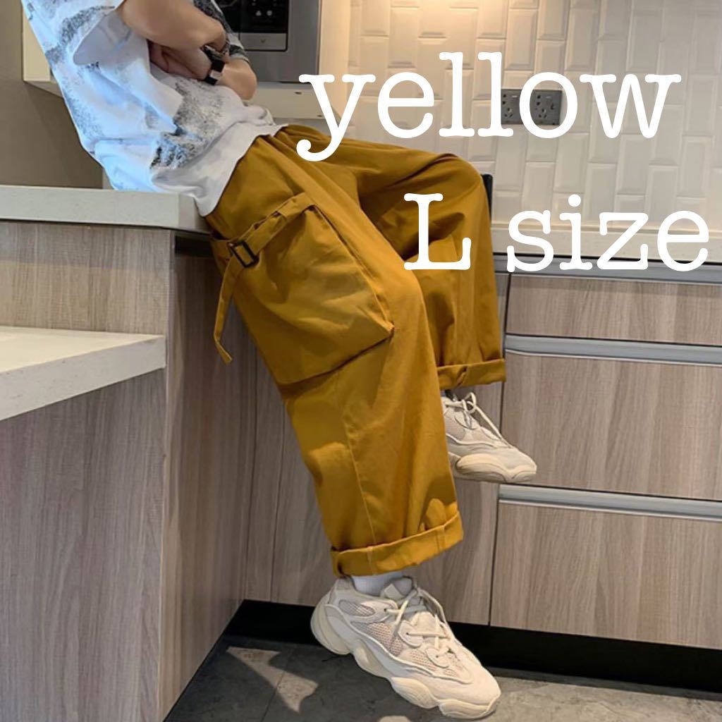 - ボトムス ワイドパンツ カーゴパンツ ワークパンツ ルーズパンツ ユニセックス 男女 黄色 イエロー L