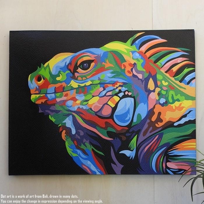 > ドットアート 90cm × 70cm トカゲ 爬虫類 モダンアート 手描き 絵画 アートパネル バリ絵画 新築祝い プレゼント