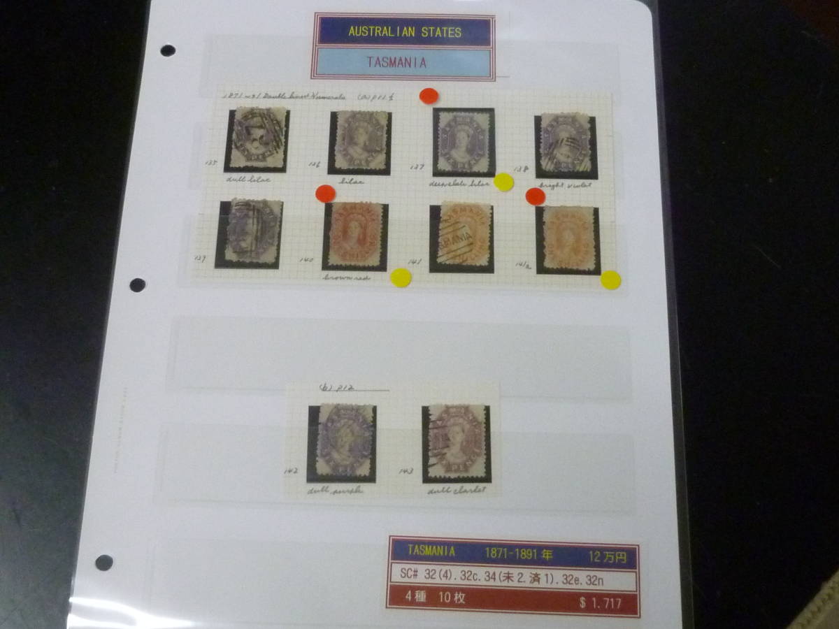 > 24 A №9 旧豪州切手 クラシック 1871-91年 タスマニア SC#32-34の内 4種 計10枚 使用済・未使用3種含 【2013年版SC評価 $1,717】