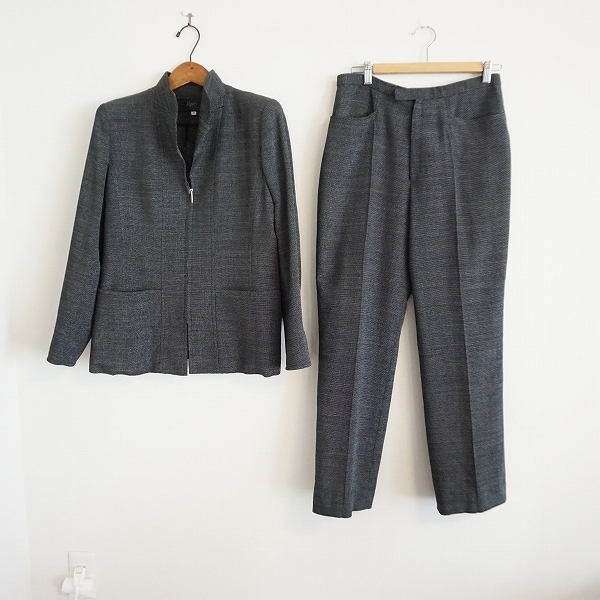 - #snc イネス 銀座マギー ignes パンツスーツ 42 黒系 セットアップ スリーピース ラメ スタンドカラー センタープレス レディース [836969]