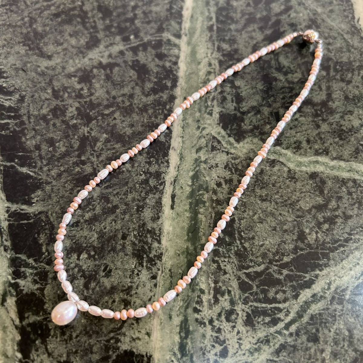 - 【新品】淡水パールネックレス★白×薄ピンク マグネット式 パーティー