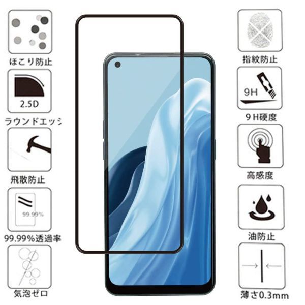 - 黒 2枚入り OPPO Reno7 A 強化 ガラス フィルム OPG04 CPH2353 液晶 保護 画面 スクリーン カバー シール シート スクリーン9H オポ