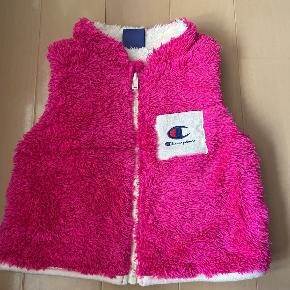- 送料無料 Champion チャンピオン ふわふわジップアップベスト 90cm ピンク 送料込み
