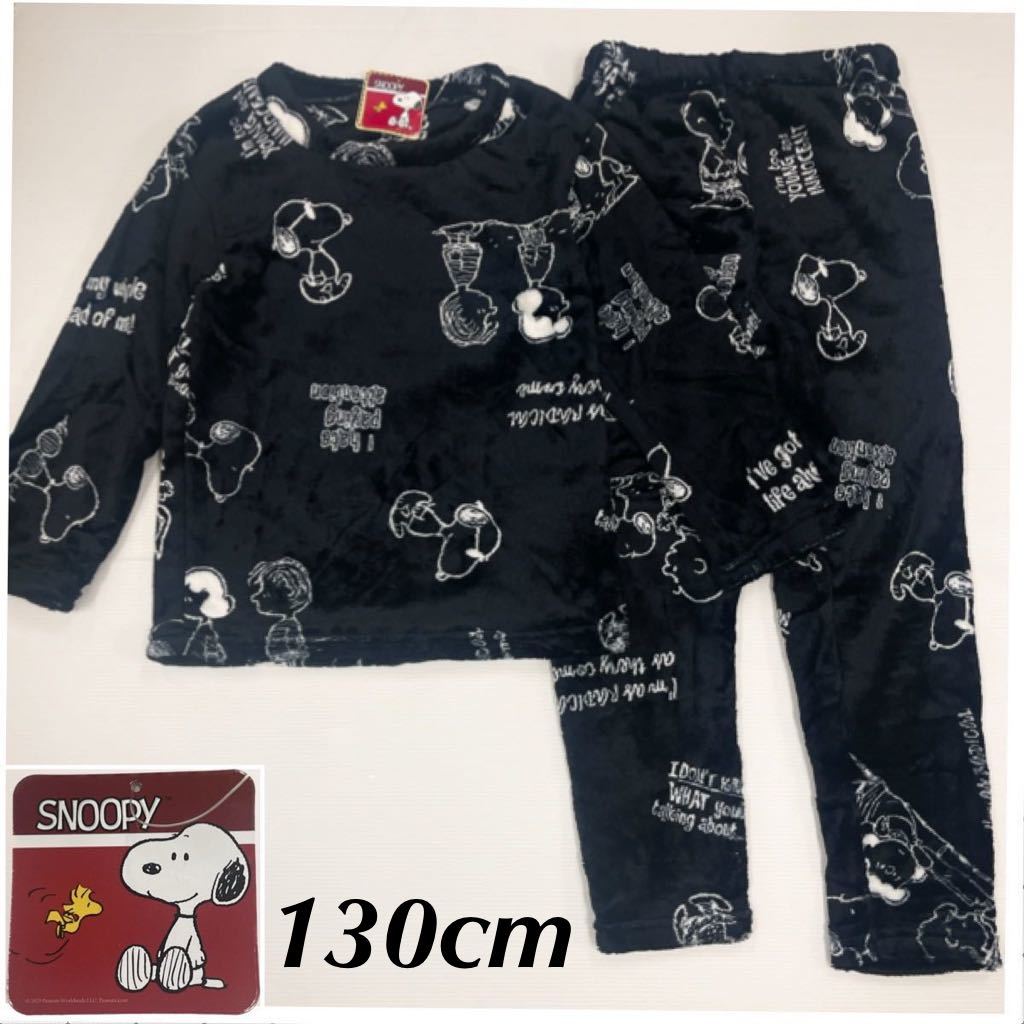 - 新品62087 スヌーピー130cm 黒 ブラック ジュニアフリース丸首長袖パジャマかぶりフランネルパジャマルームウェアあったか素材男女兼用