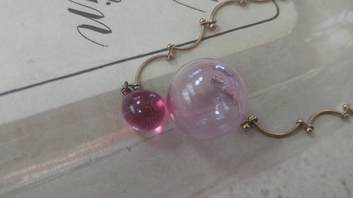 - 2色のクリアピンクボール×ゴールドカラー・デザインチェーン ネックレス アレンジ可能